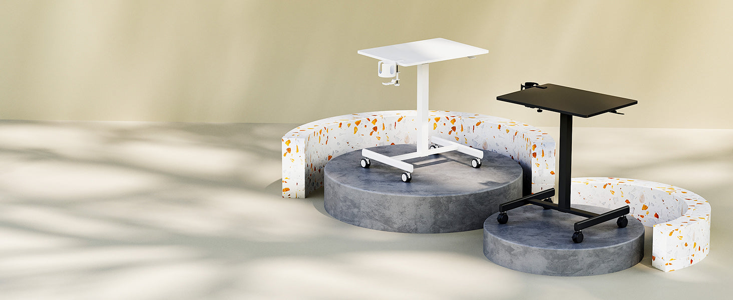 This mobile standing desk adapts to your needs with smooth height transitions—bringing comfort and flexibility to any workspace.